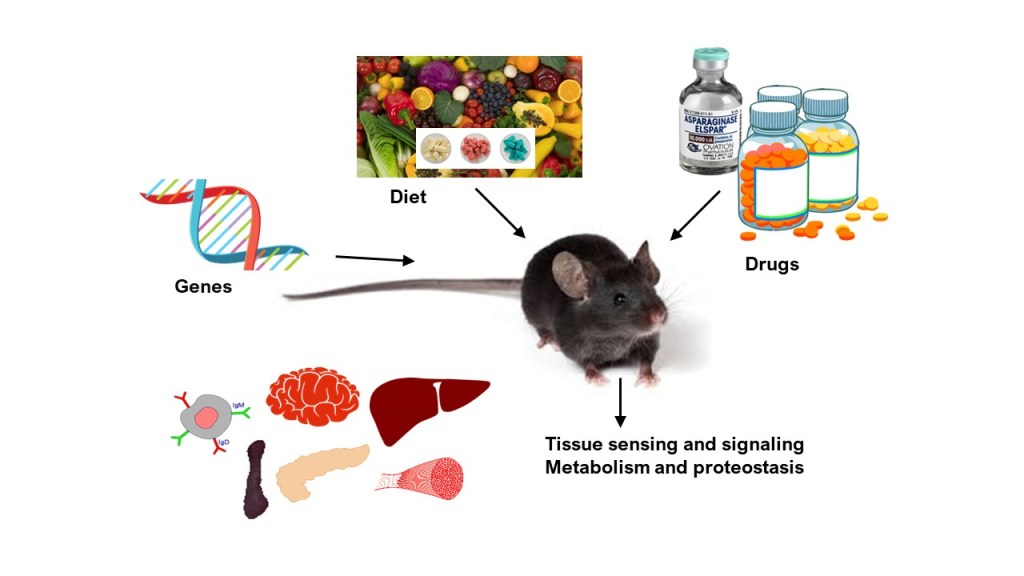 Another major foci in the lab explores how clinically relevant drugs intersect with nutrient pathways. A key example is asparaginase, a bacterial enzyme used to treat acute lymphoblastic leukemia, the most common childhood cancer. Asparaginase breaks down circulating asparagine and glutamine, creating a systemic amino acid insufficiency. In leukemic cells which cannot make asparagine, asparaginase inflicts a lethal amino acid starvation. Yet for reasons not completely understood, cancer patients may unpredictably suffer severe complications, such as thromboembolism, liver failure and pancreatitis. These studies aim to increase the safety and efficacy of asparaginase and to develop new and improved uses for asparaginase to treat disease.